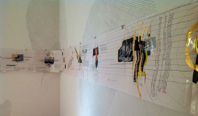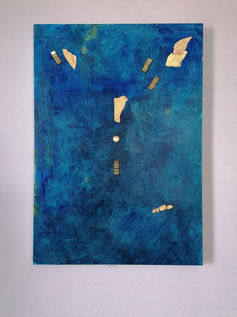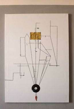 Cristina Senatore realizza le proprie opere materiche per lo più in materiali riciclati (componenti recuperati all'interno di vecchi elettrodomestici, frammenti di metallo, stoffa, pezzi di imballaggi alimentari, cartone e l'immancabile per me carta stagnola dorata). Spesso in esse resta forte la componente del disegno, e così si vede riemergere la linea trasformata in filo di cotone nero cucito su tela ad esempio o in fil di ferro manipolato.