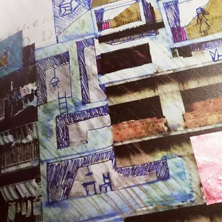 Disegni e collage sulle pagine di un libro del Prof. Arch Cherubino Gambardella